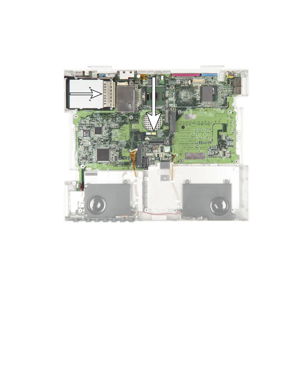 by the top arrow) and the PC Card eject button clears the bottom of the