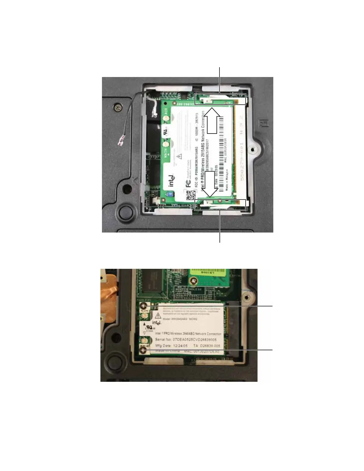6 If the wireless card is held by clips, press outward on the clip at each side of the card until