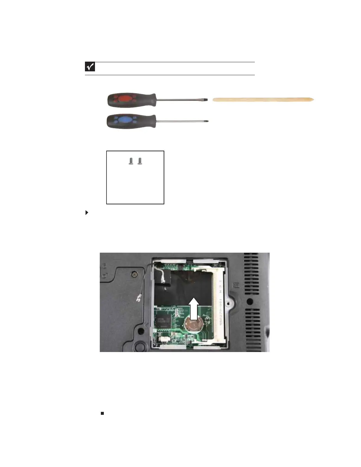 2 Open the wireless bay by following the instructions in “Replacing the IEEE 802.11 wireless