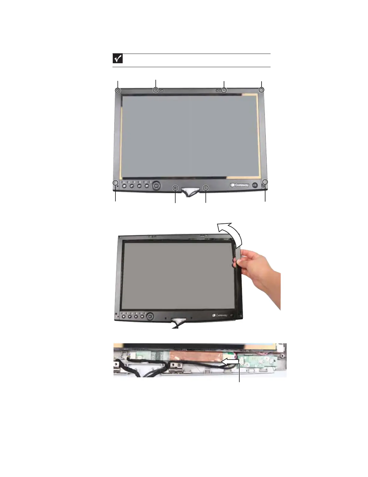 5 Remove the screws from the front of the LCD panel assembly.