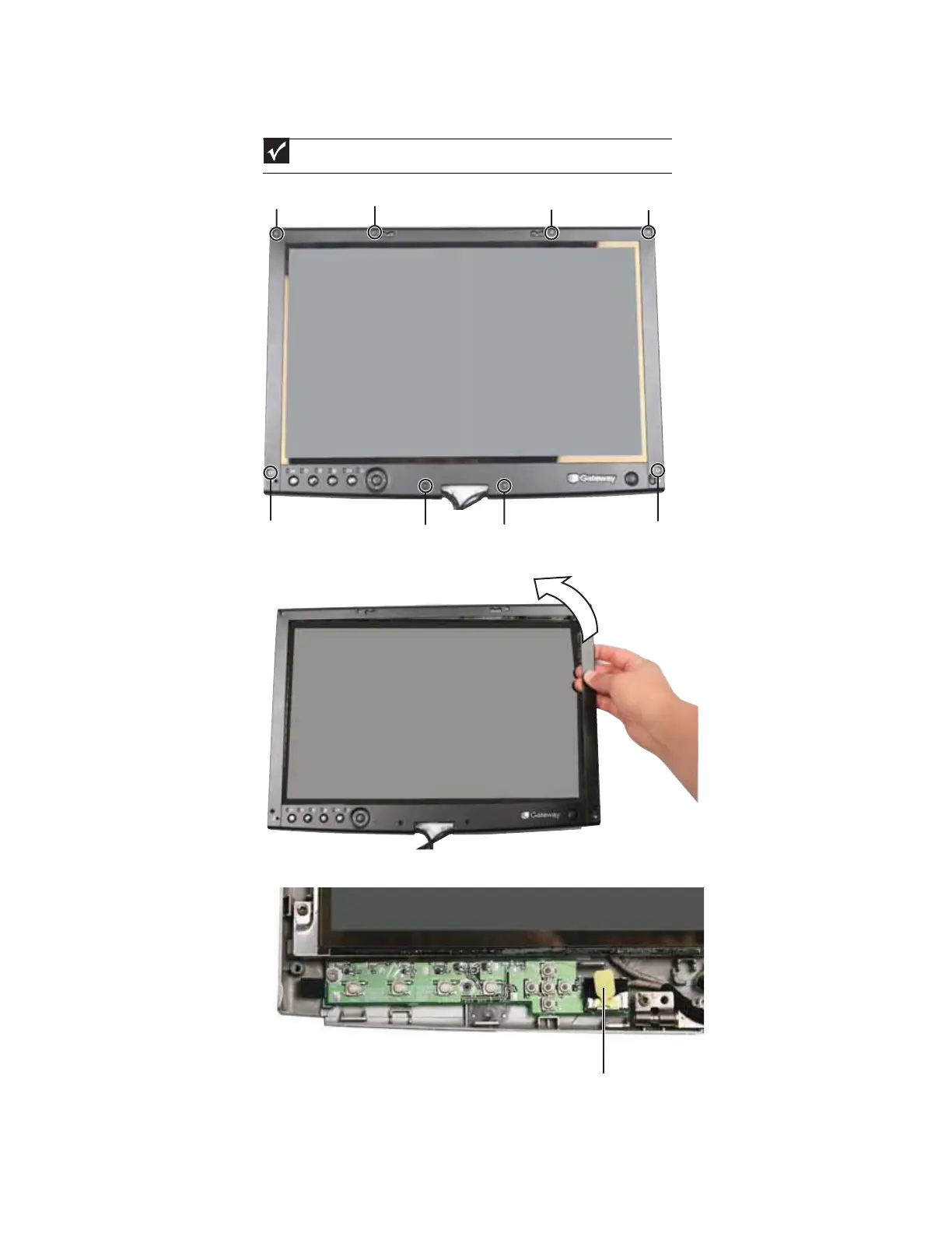 5 Remove the screws from the front of the LCD panel assembly.