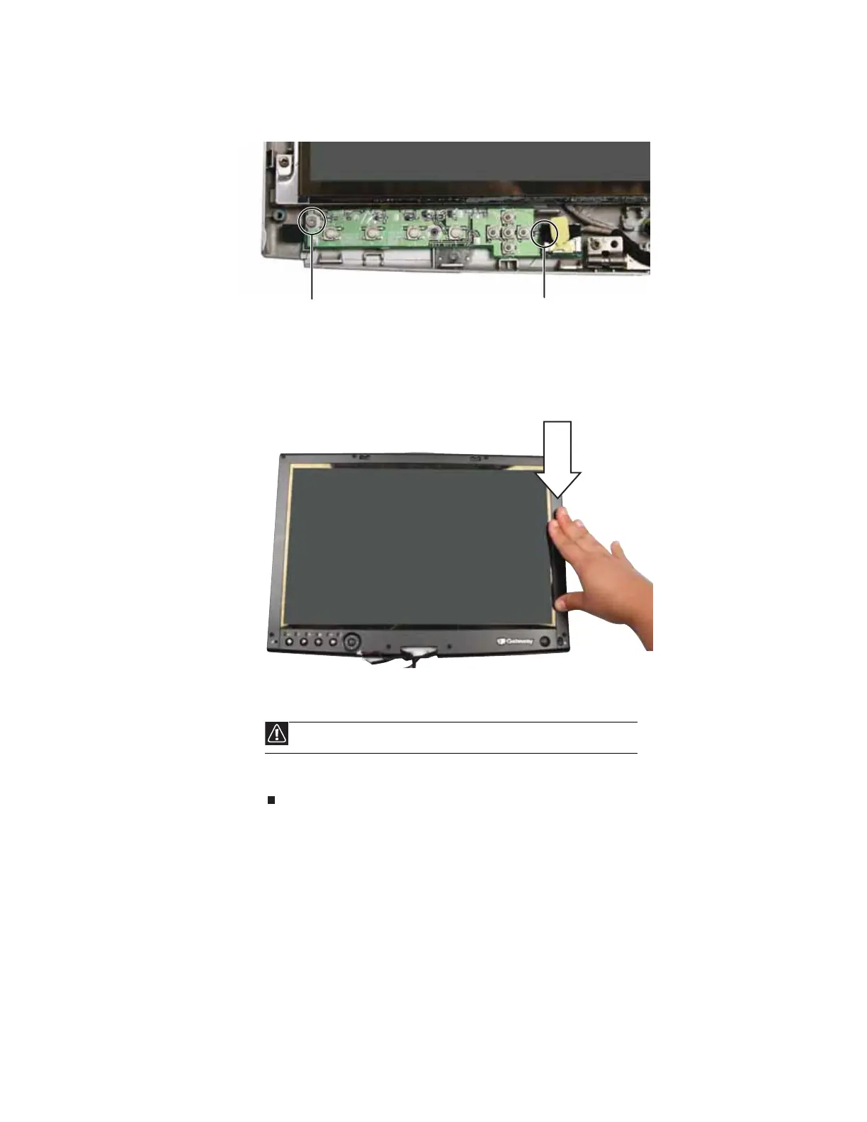 8 Remove the two screws that connect the tablet button board to the front of the LCD panel