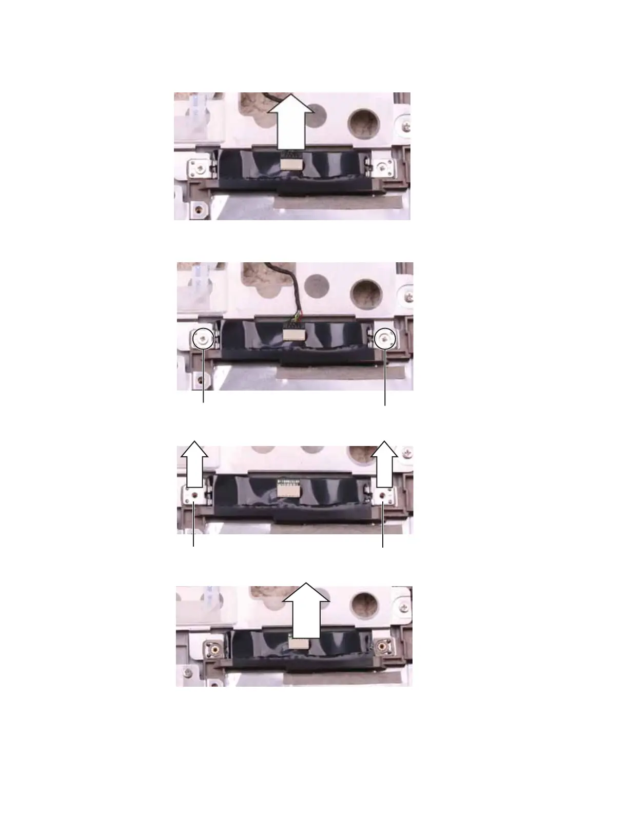 11 Remove the screws from the metal clips covering the ends of the fingerprint reader.