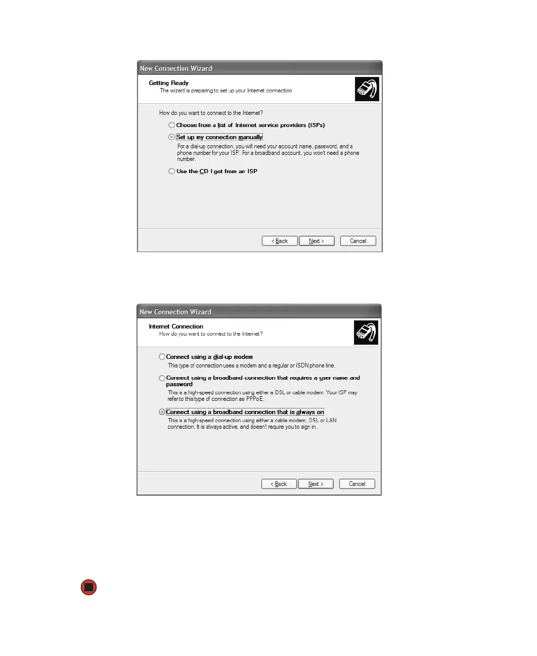 8 Click the type of Internet connection you are setting up, then click Next.