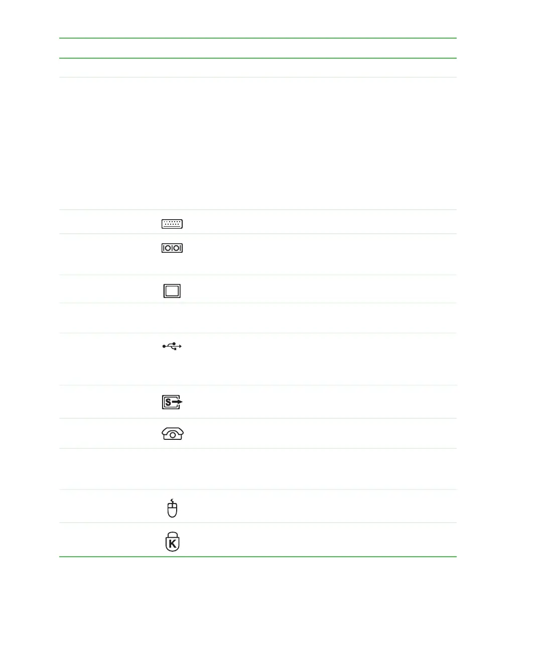 Monitor port Plug a monitor into this port.
