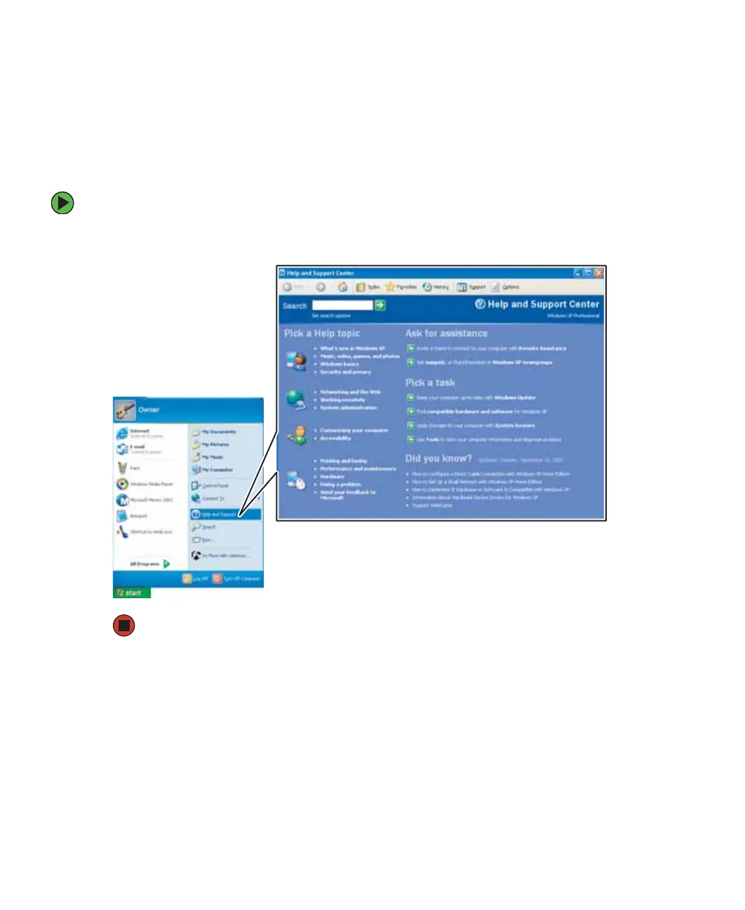 ■ Click Start, then click Help and Support. Help and Support opens.