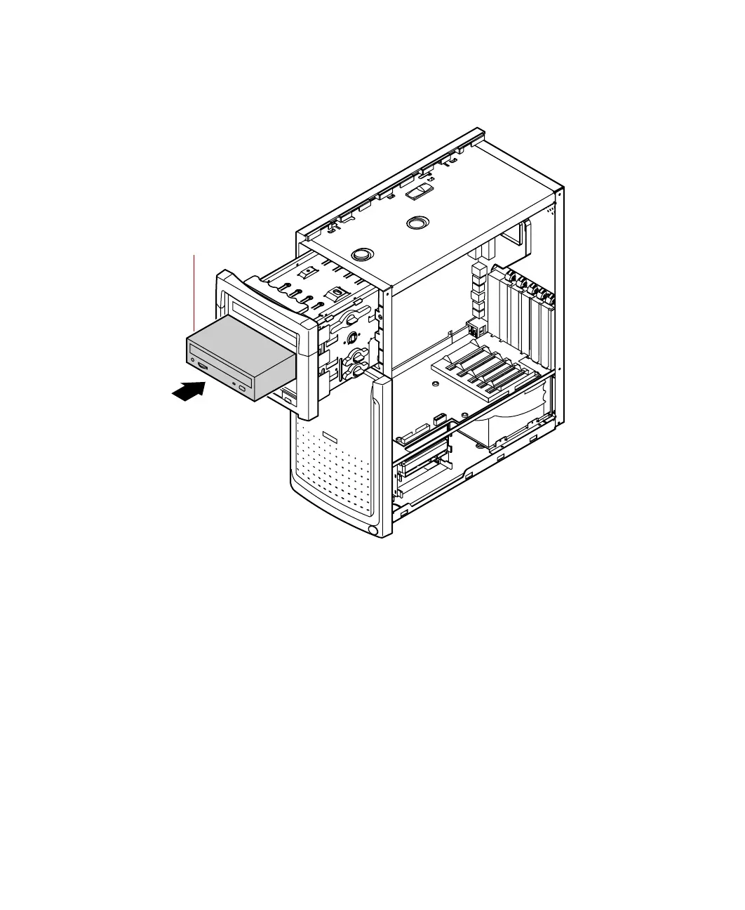 10 Push the release button in and slide the drive cage back into the chassis