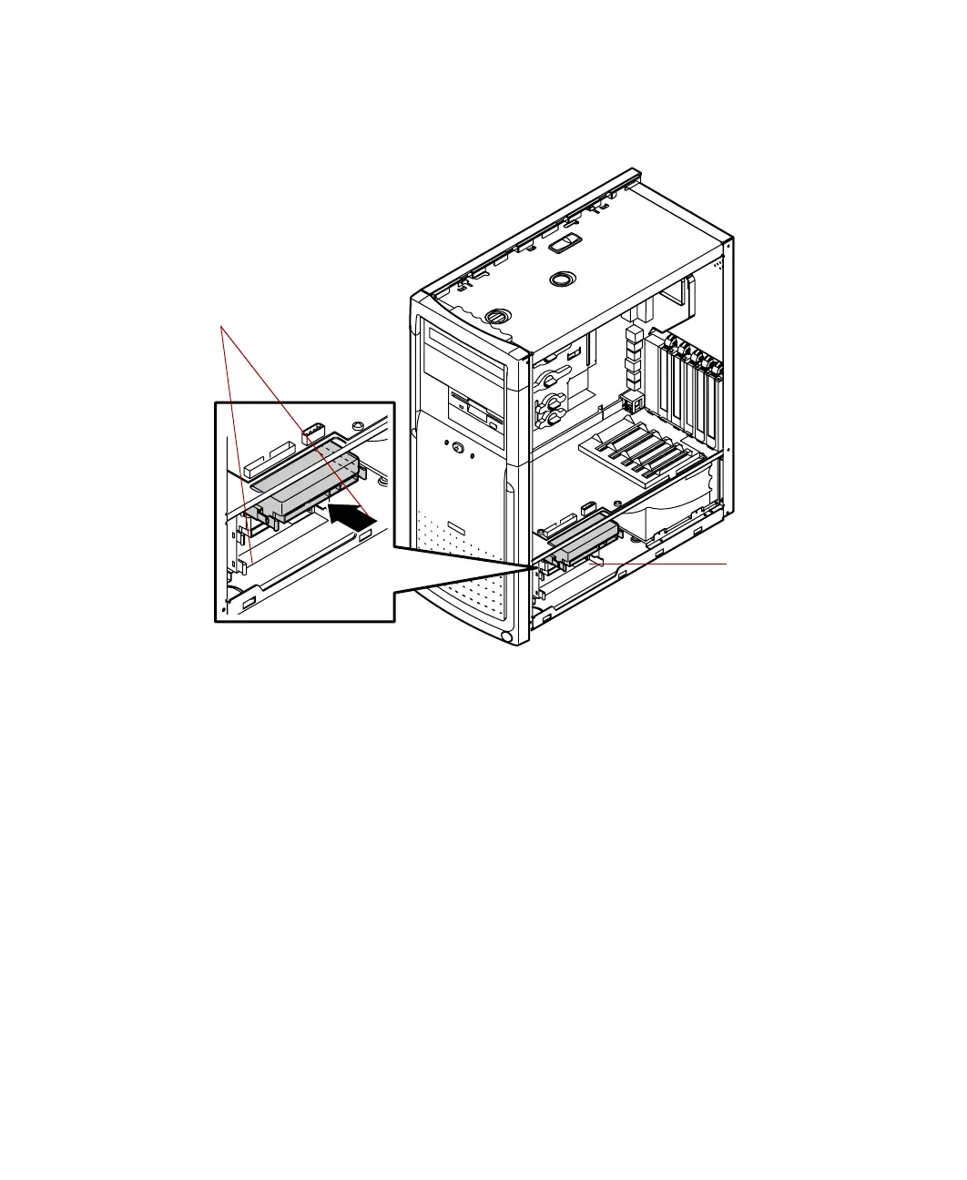 8 Align the drive tray rails with the side channels in the hard drive cage,