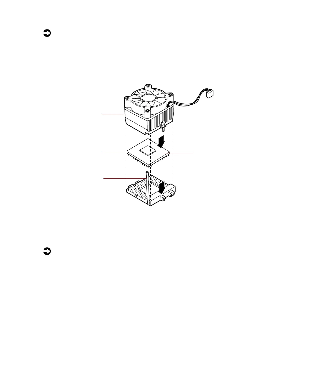 1 Replace the heat sink by hooking the metal clip on the heat sink to the