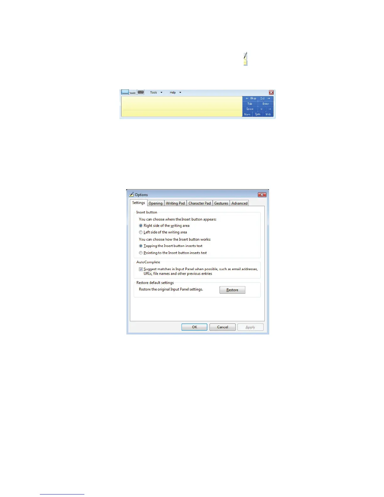 ouvrir le panneau de saisie Tablet PC. Utilisez le panneau TIP pour entrer des données