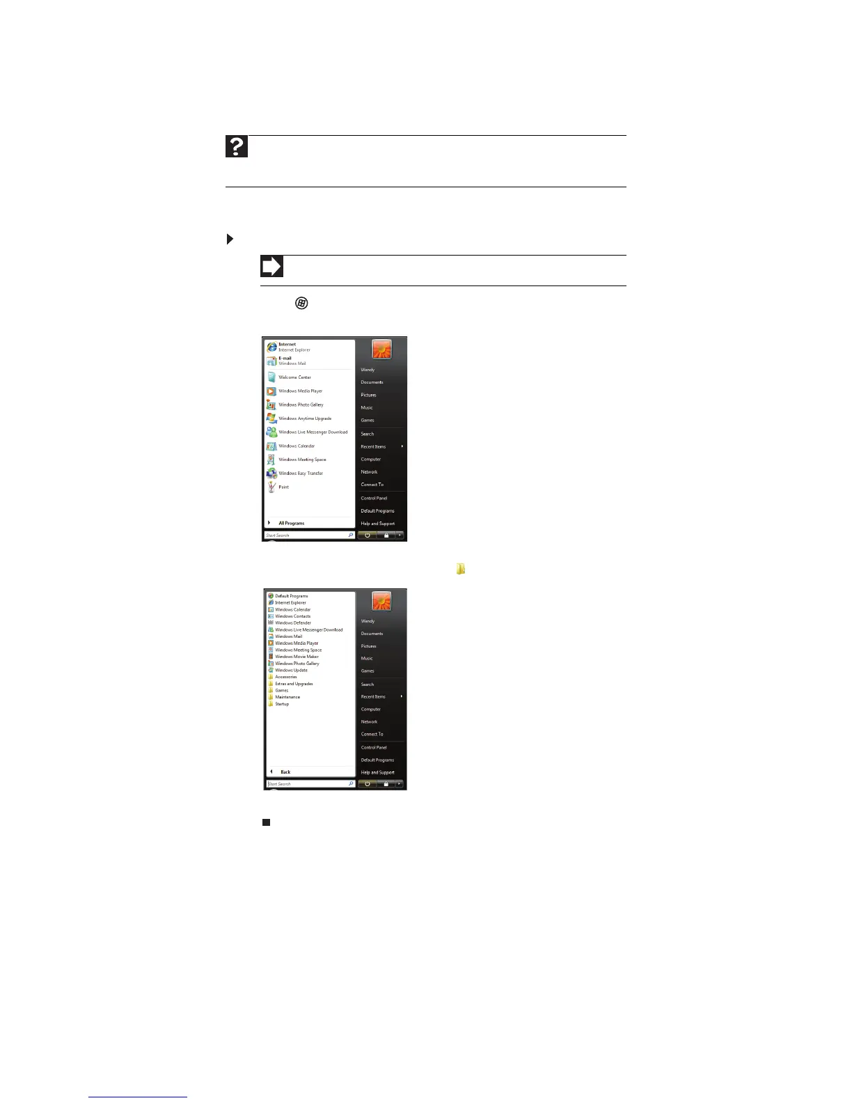 2 Click All Programs to see all programs, files, and folders in the Start menu. If