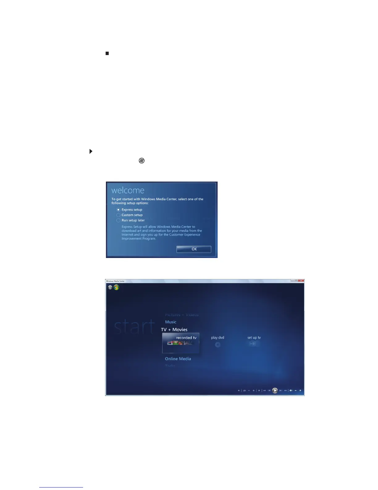 Windows Media Center. La première fois que vous démarrez Windows Media