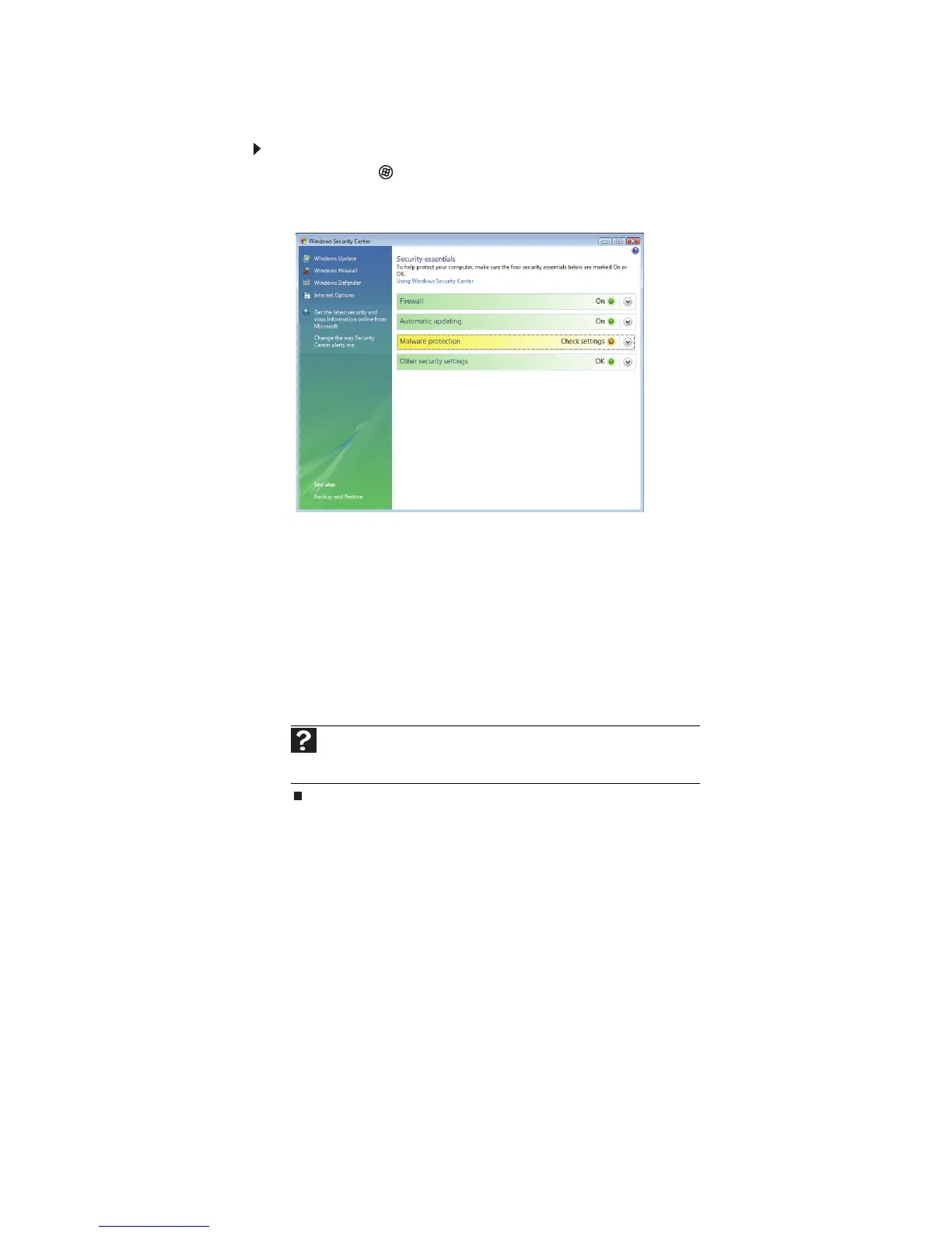 Pour obtenir plus d’informations sur le Centre de sécurité Windows, cliquez sur