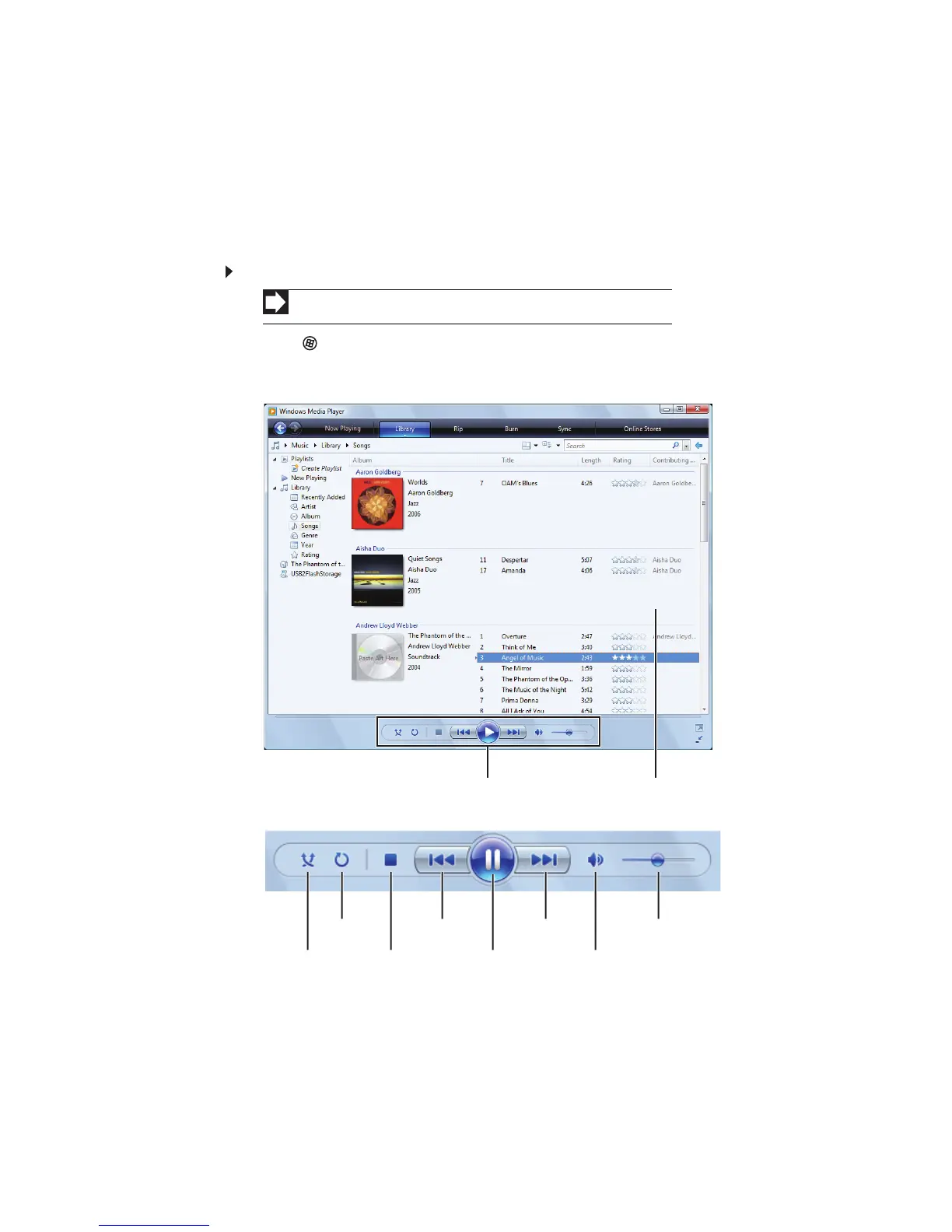 • Rewind quickly rewinds the current file (when you click and hold it) or skips