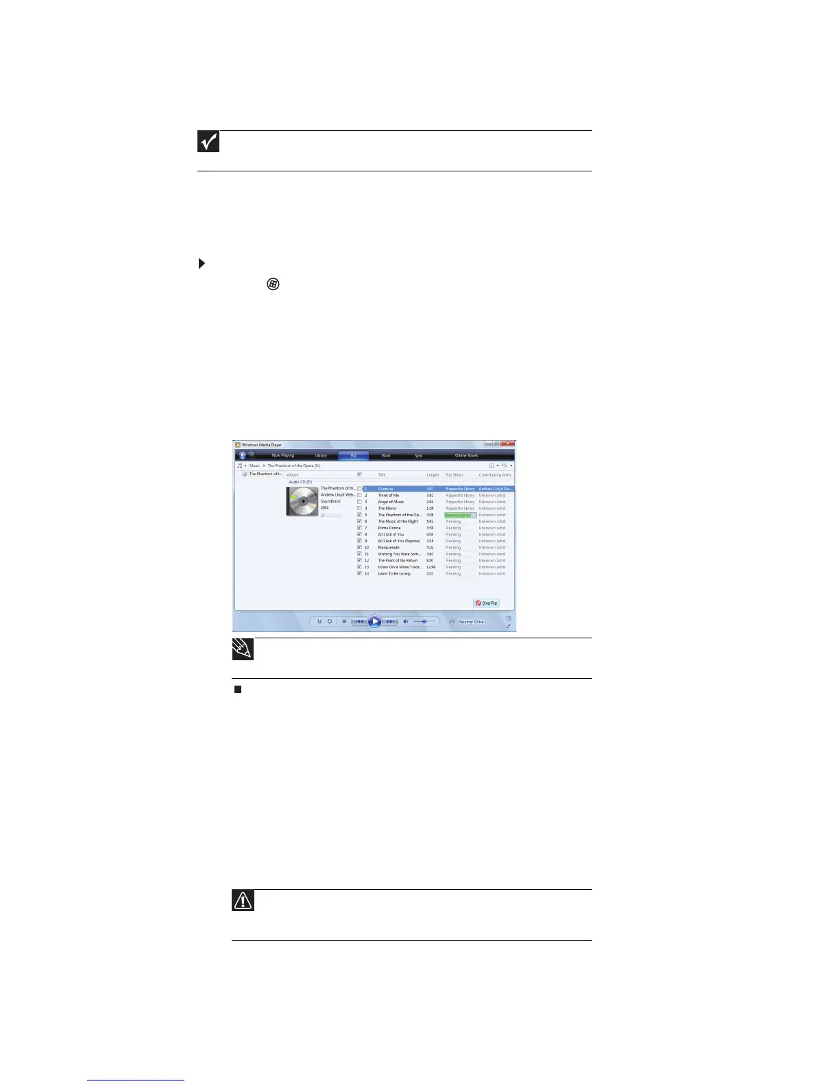 Start Rip. Windows Media Player records the tracks to your hard drive. A