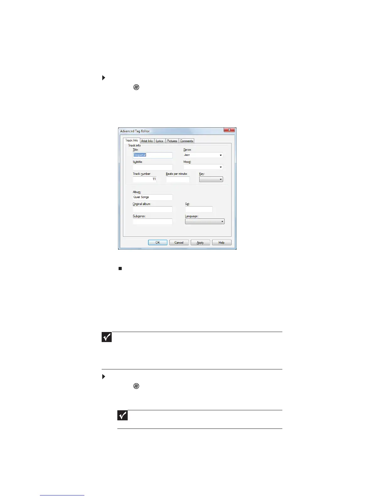 After you add a WMA or MP3 file to your music library, you can edit the track’s
