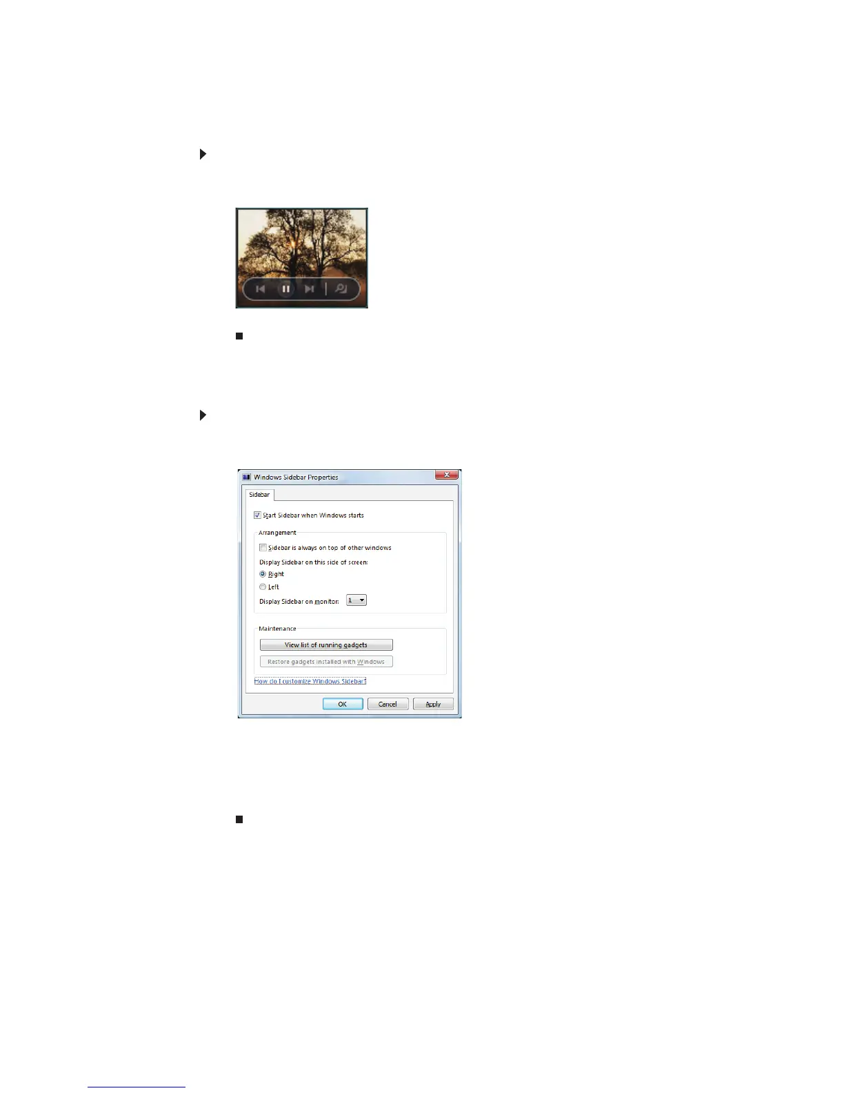 1 In the Sidebar, hold the mouse pointer over the gadget. The gadget’s built-in