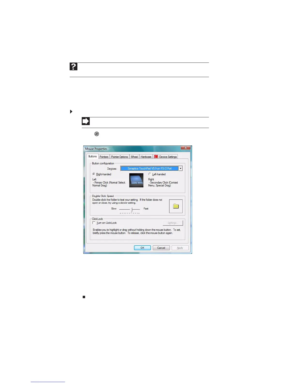 1 Click (Start), Control Panel, then under Hardware and Sound, click Mouse.