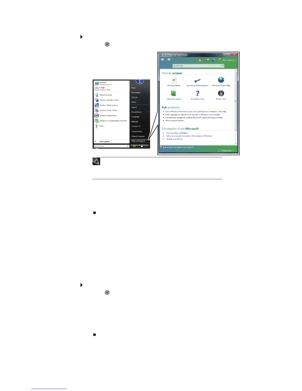 1 Click (Start), then click Help and Support. Help and Support opens.