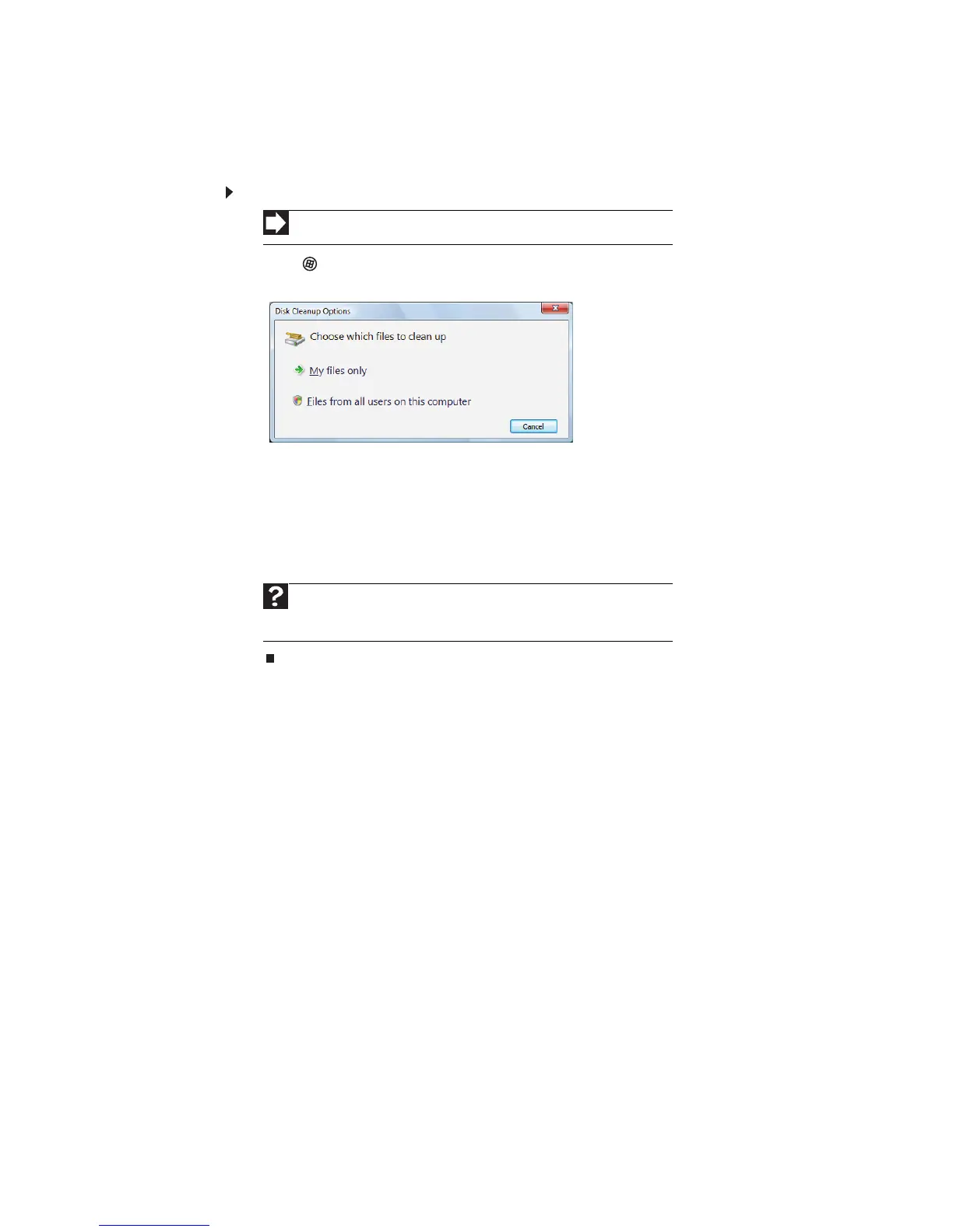 1 Click (Start), All Programs, Accessories, System Tools, then click Disk Cleanup.