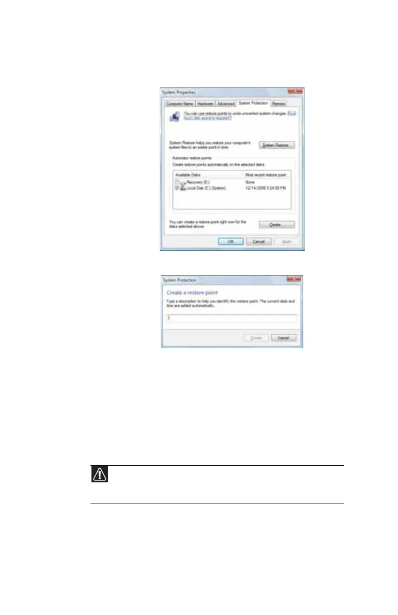3 Click Create. The Create a restore point dialog box opens.