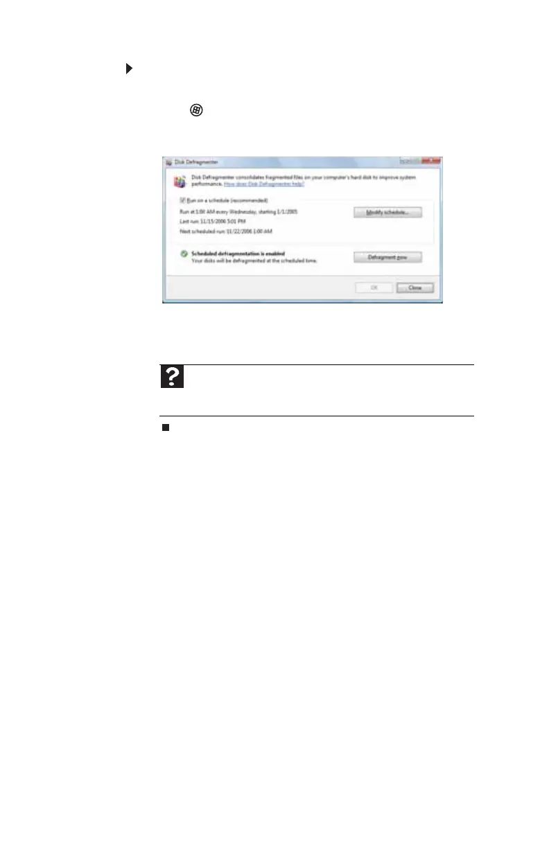 For more information about defragmenting the hard drive, click