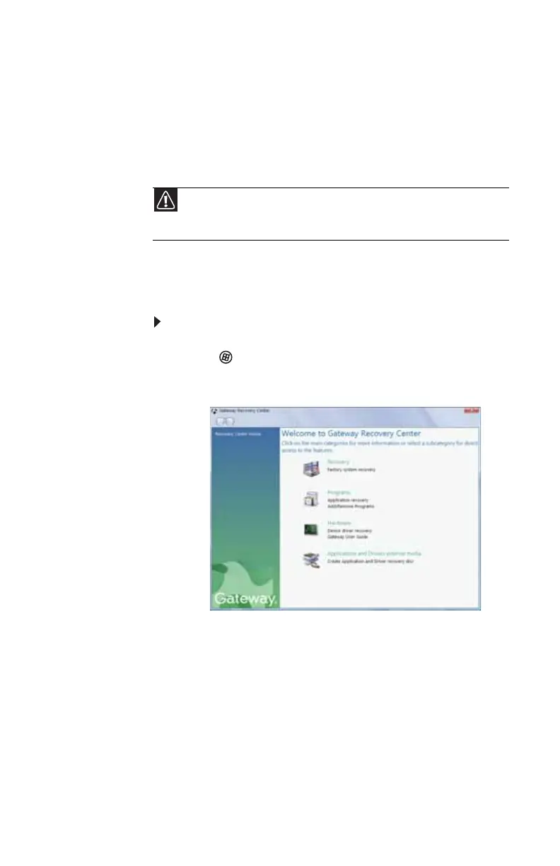 Center, then click Gateway Recovery Center. The