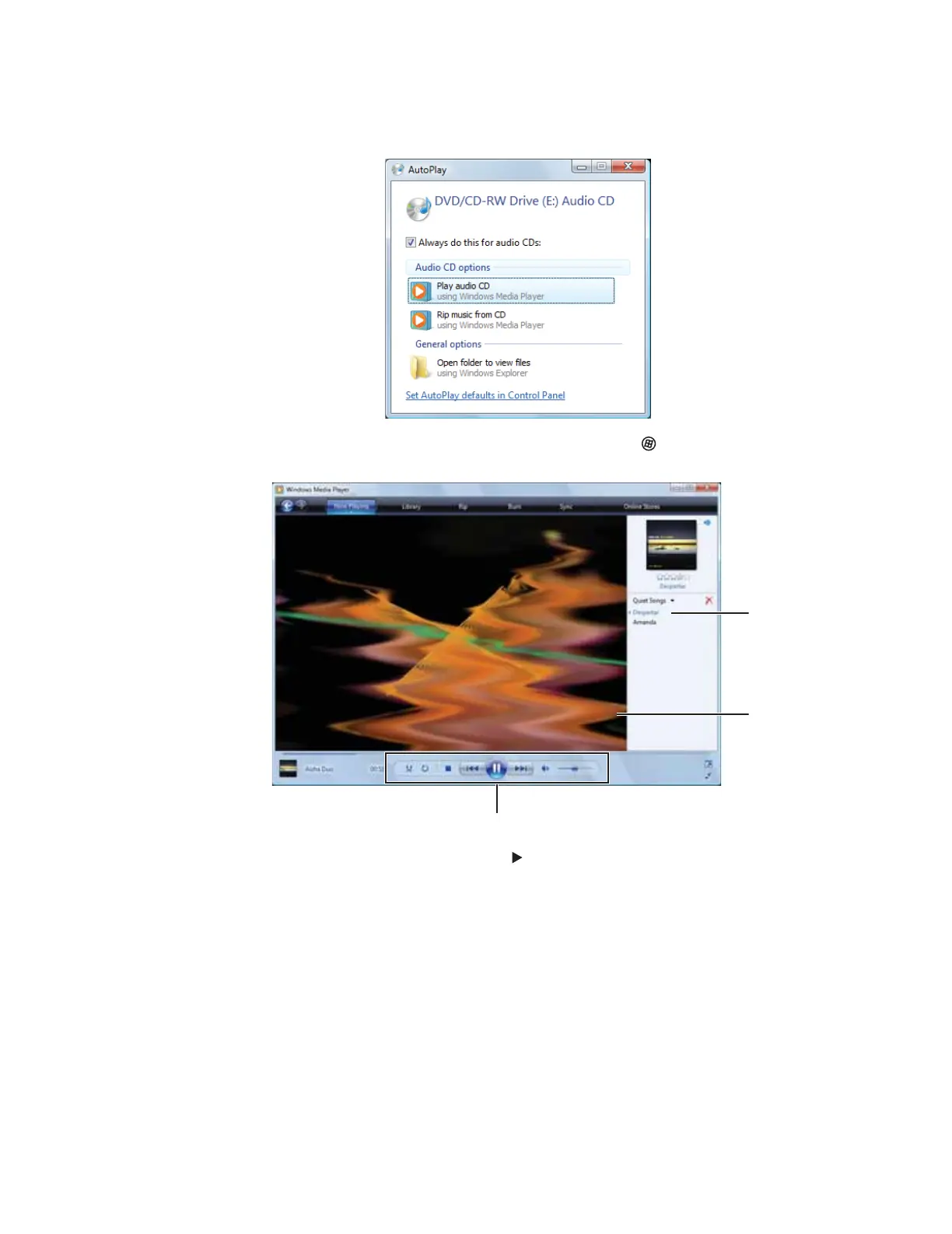 If Windows Media Player does not open automatically, click (Start), All Programs, then