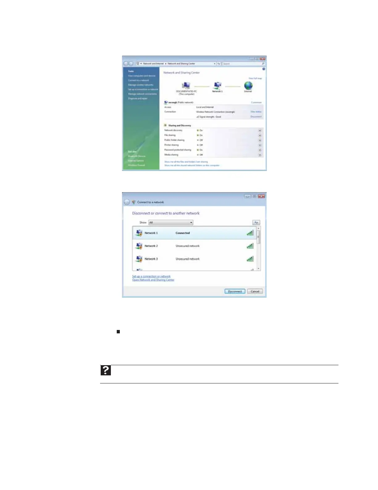 3 Click Connect to a network on the left of the window. The Connect to a network dialog