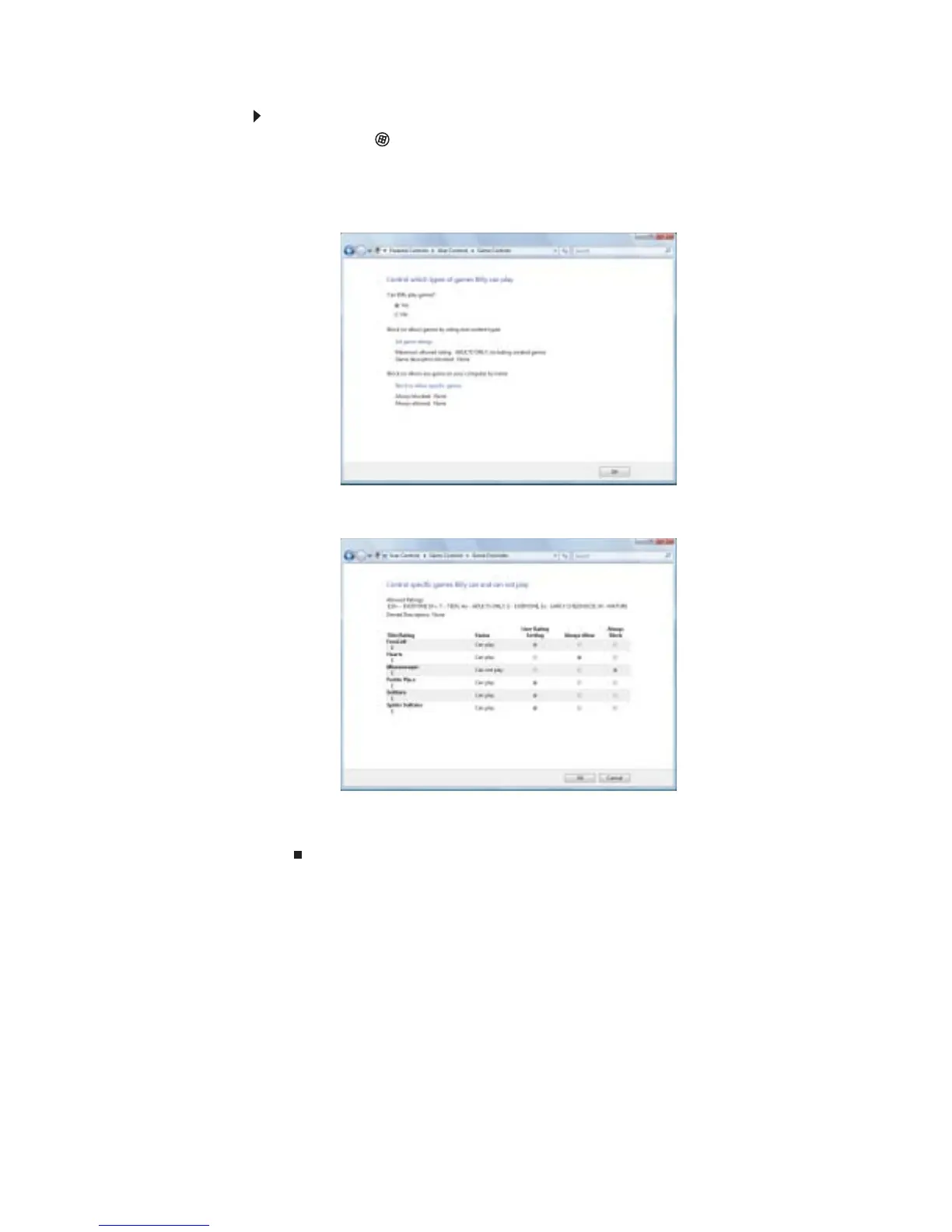 4 Haga clic en el nivel de acceso que desea para los juegos que aparecen en la lista, luego,