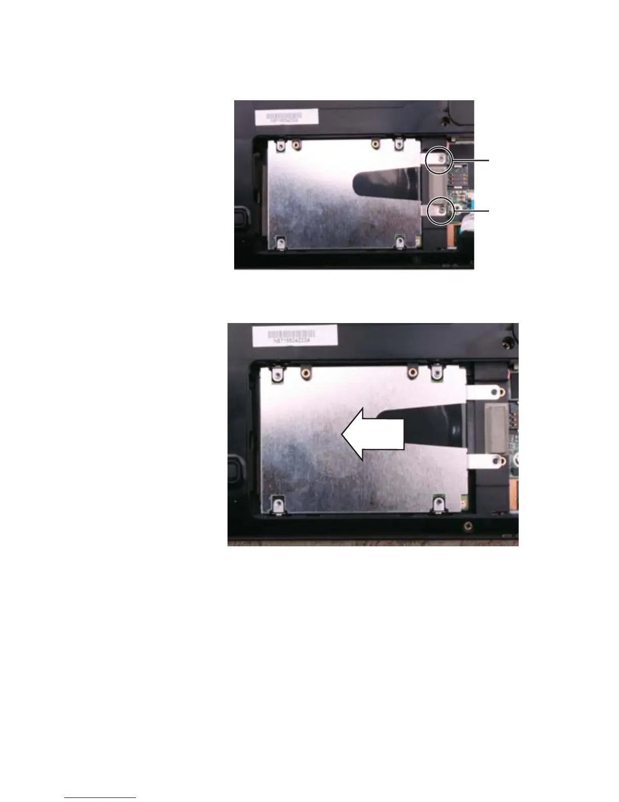 10 Retire los dos tornillos que aseguran la unidad de disco
