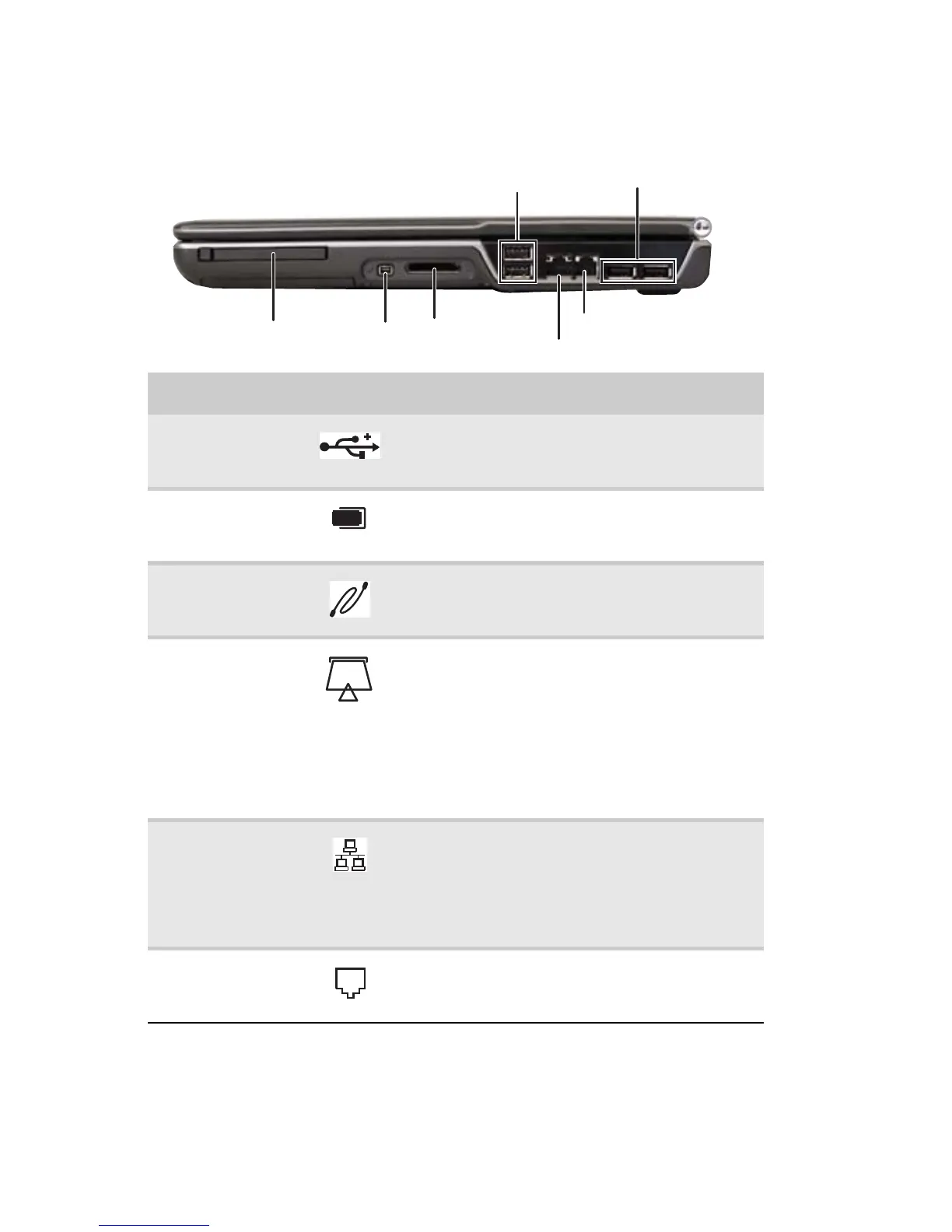 Ethernet jack Plug an Ethernet network cable into this jack.
