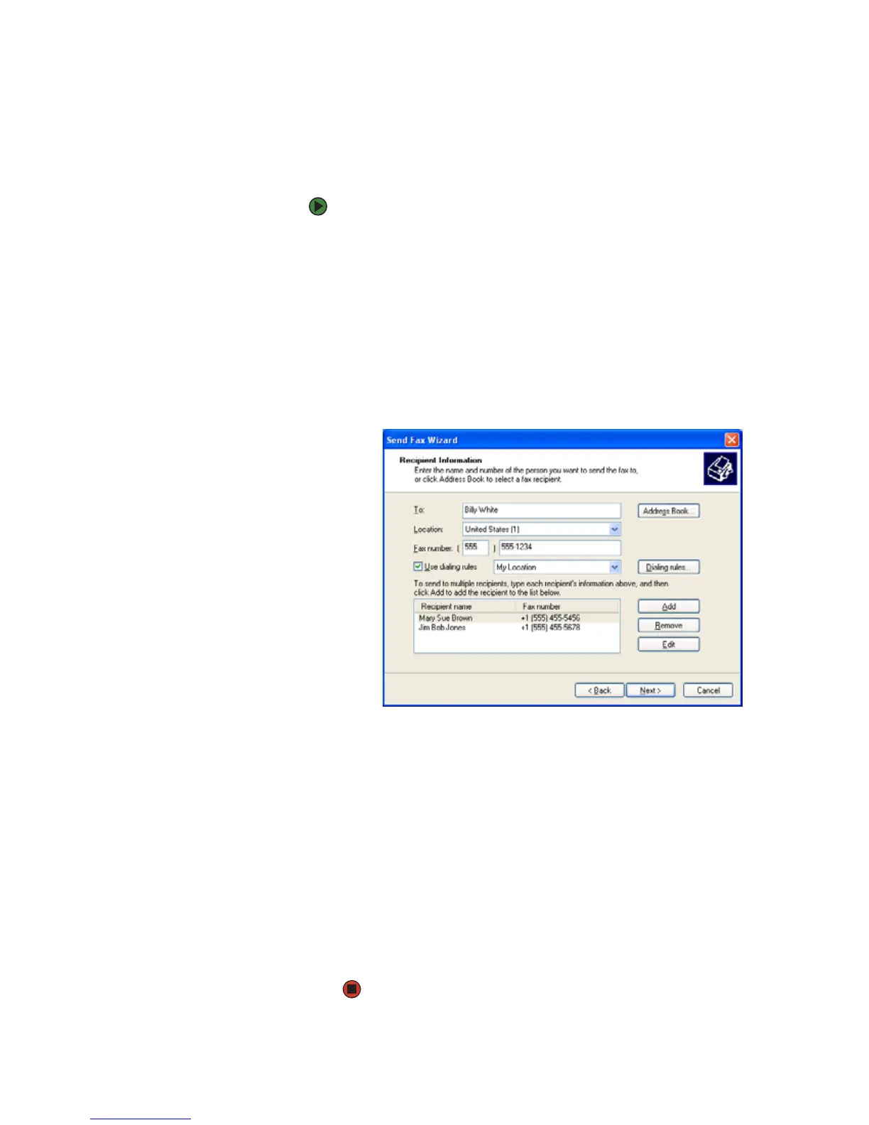 5 If you want to send your fax to more than one recipient, click Add and type