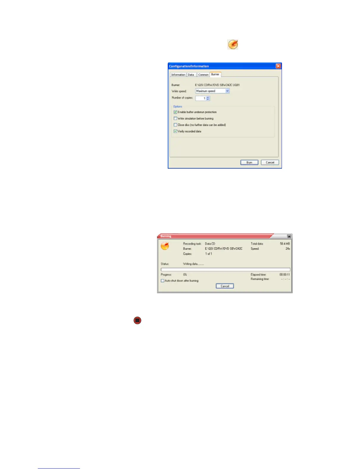 8 If you have one CD or DVD burner, click Burn. The Burning dialog box