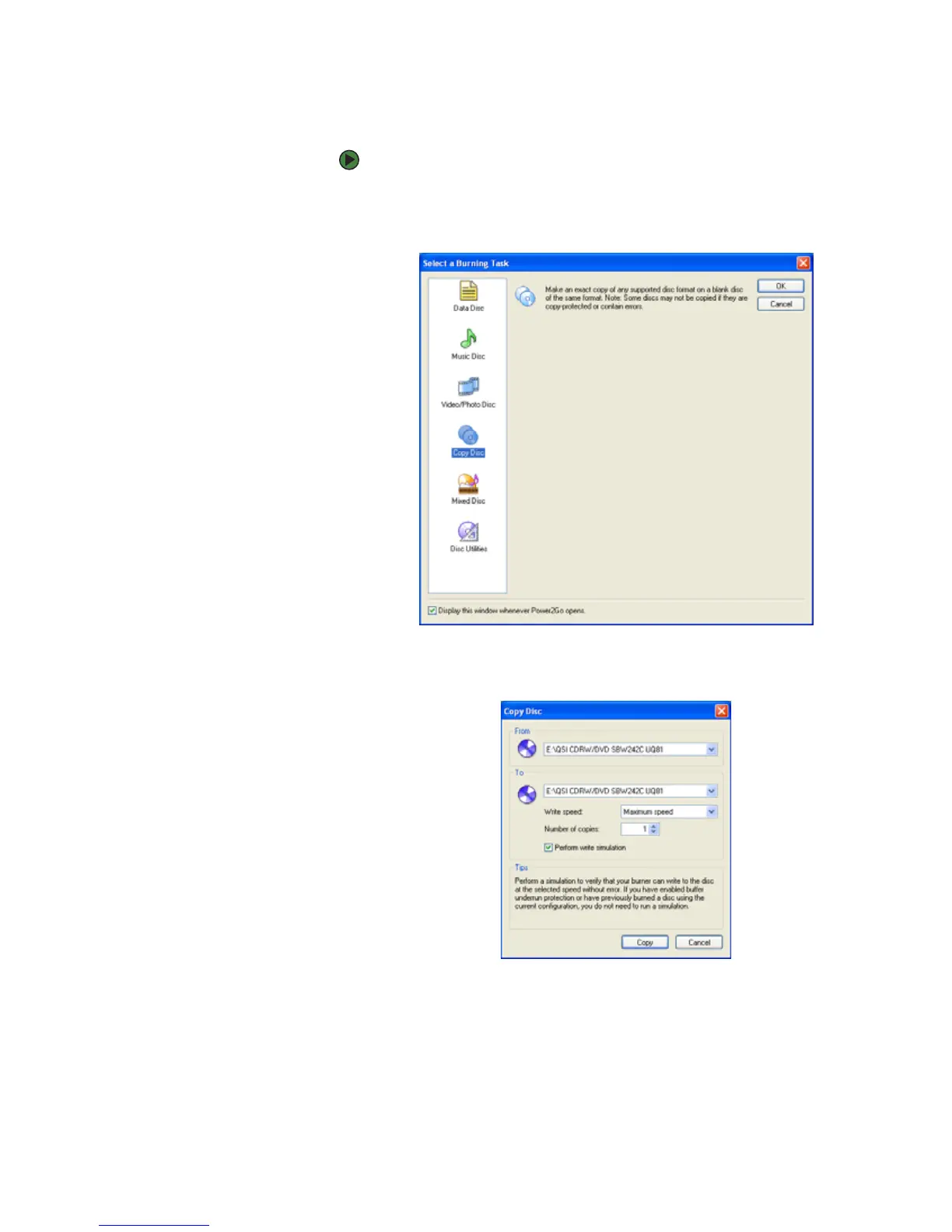 2 Click Copy disc in the left column, then click OK. The Copy Disc dialog box