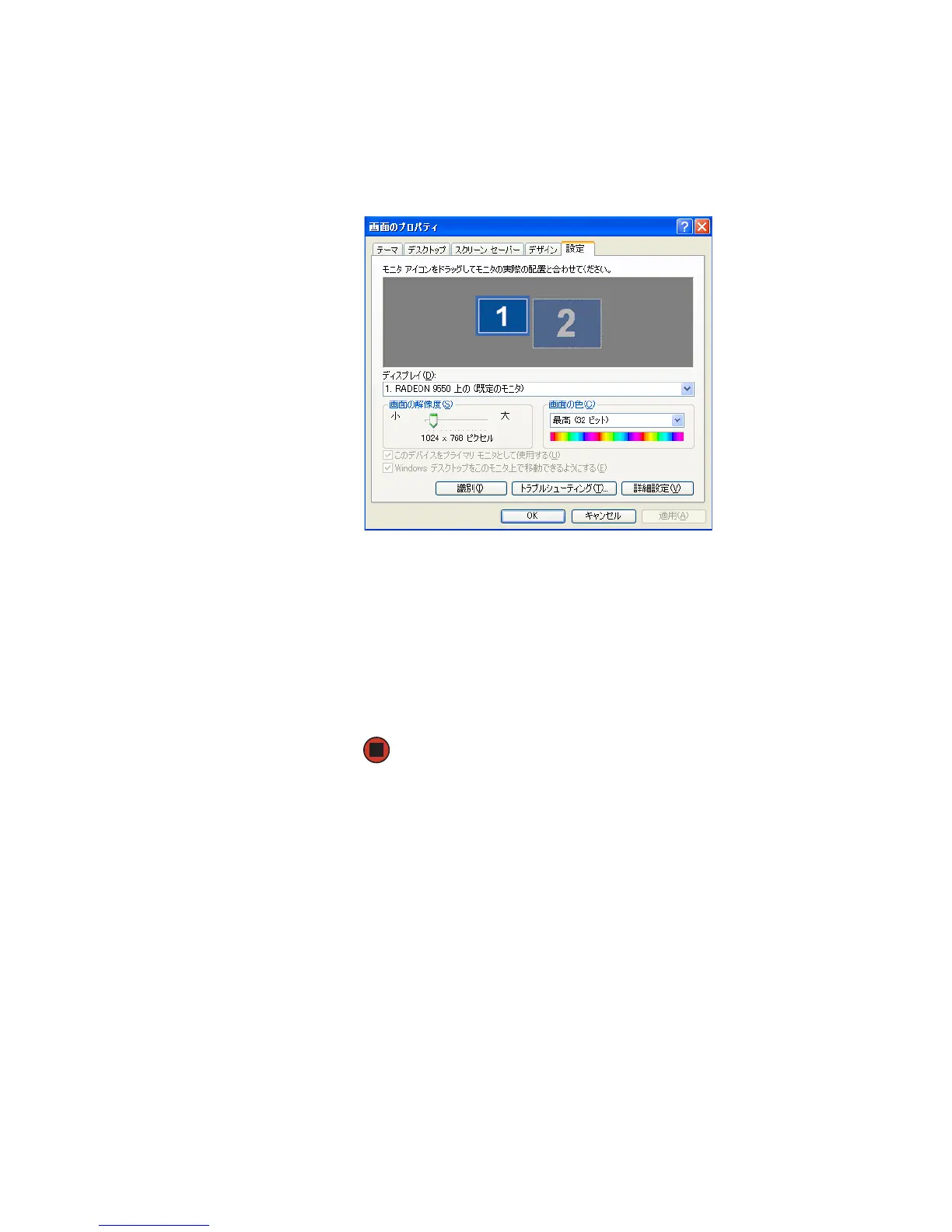 9 必要に応じて、[ 画面の解像度 ] [ 画面の色 ] などの設定