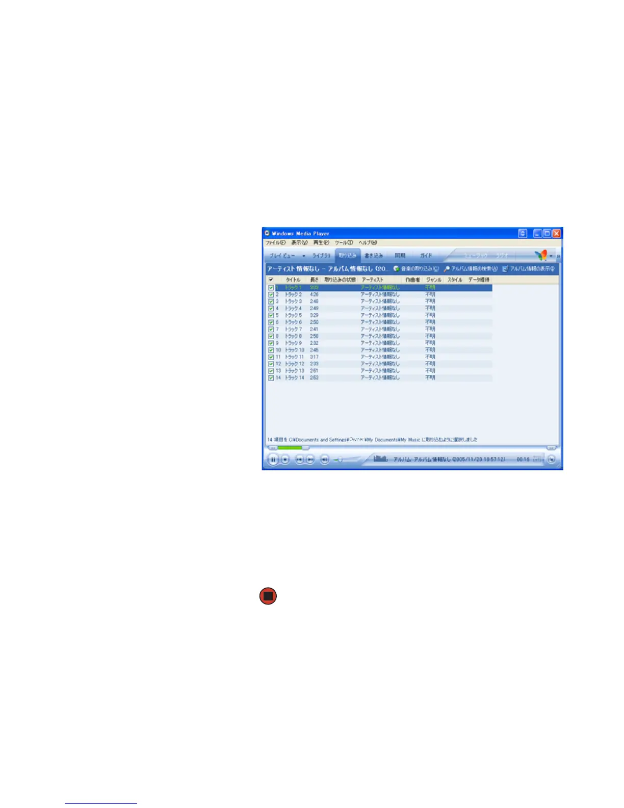 7 [音楽の取り込み]をクリックします。Windows Media Player