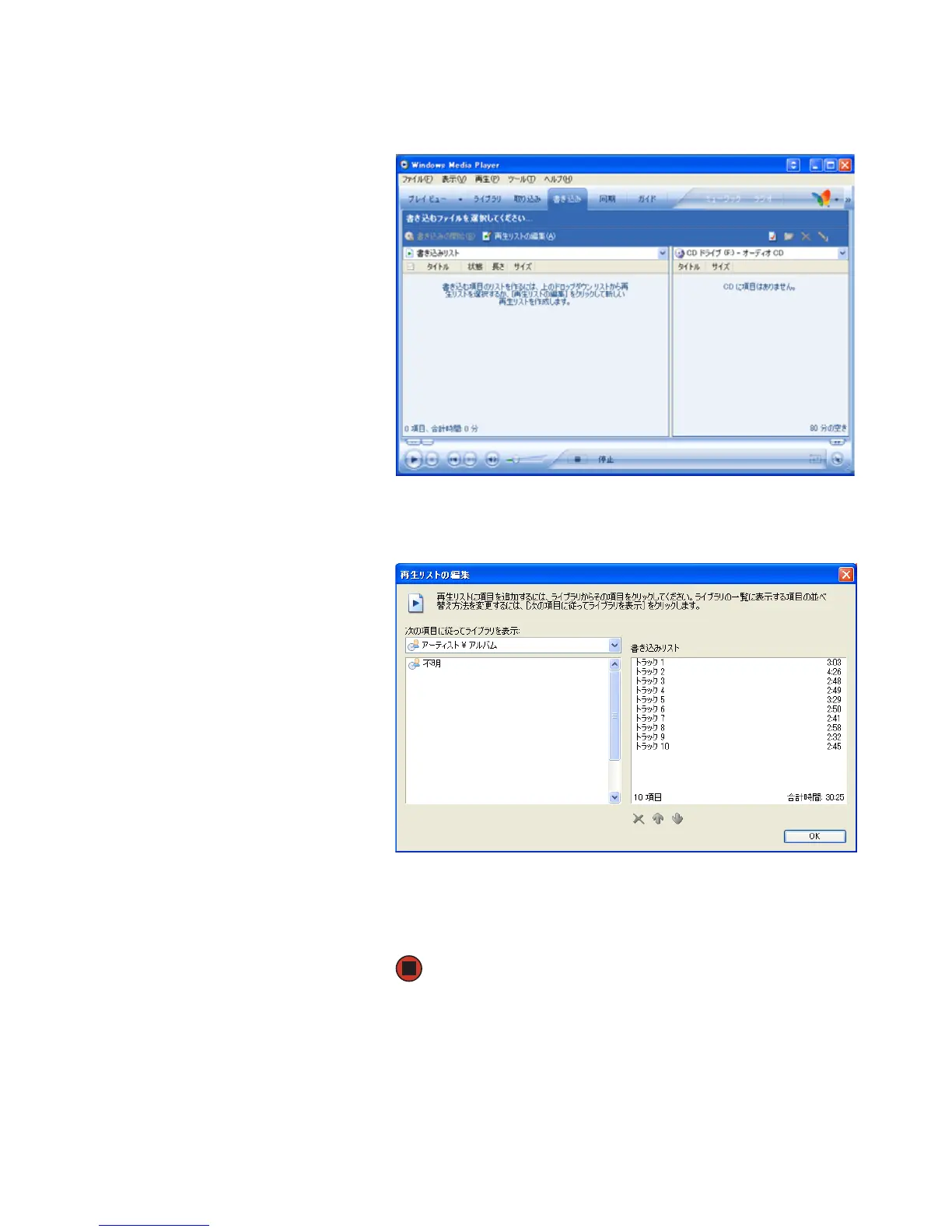 7 [書き込みの開始]をクリックします。