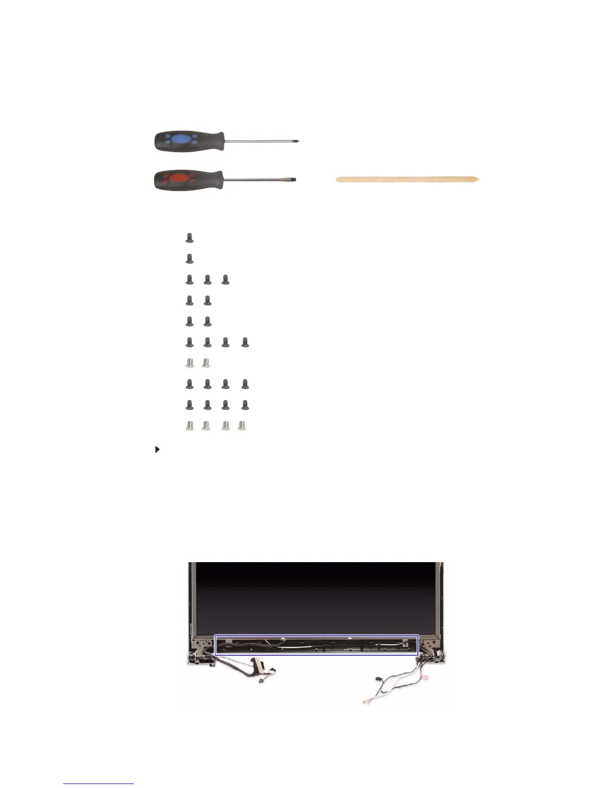 • 2 black M2.5×6 (LCD panel hinges - bottom)