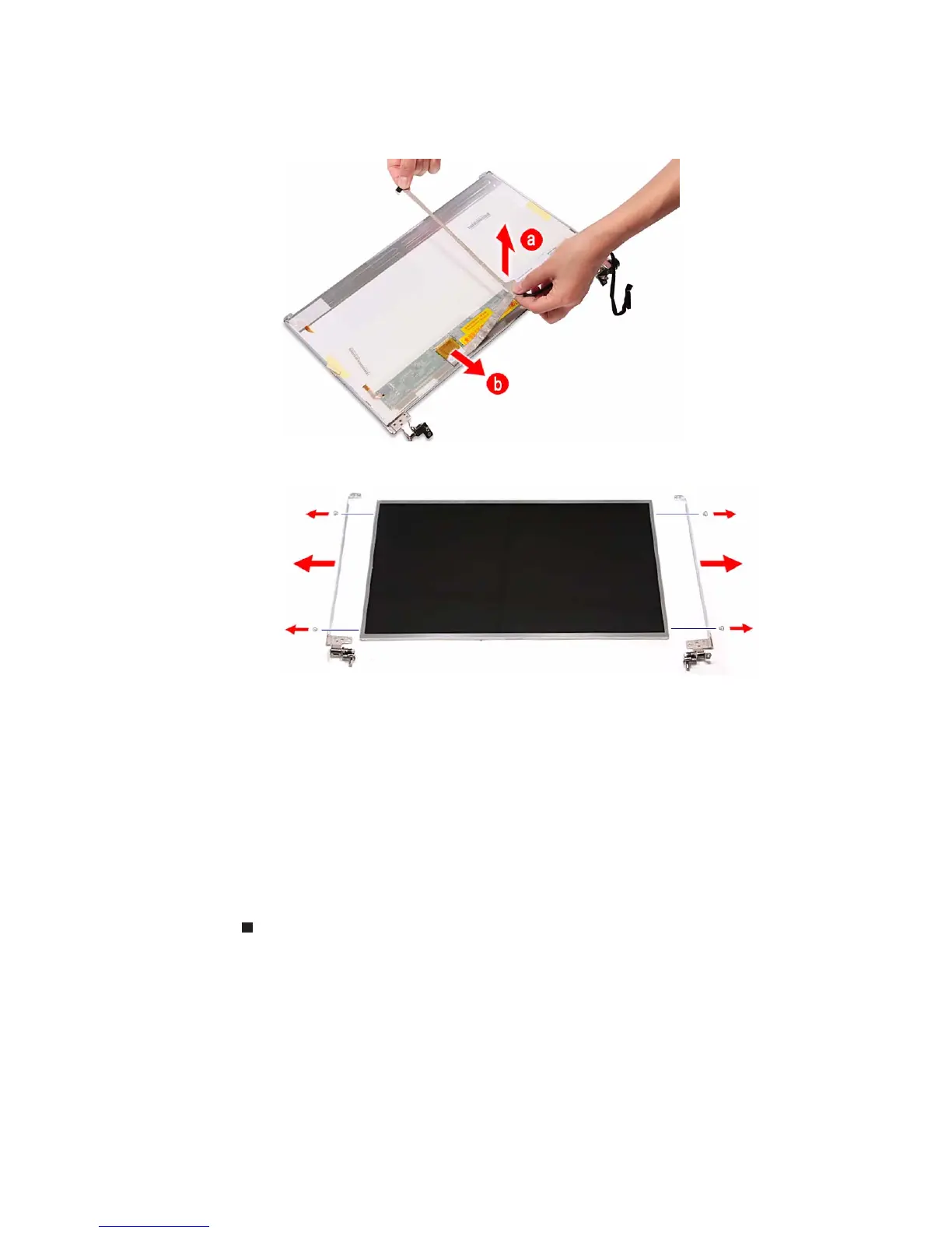 10 Remove the screws securing the LCD panel brackets.