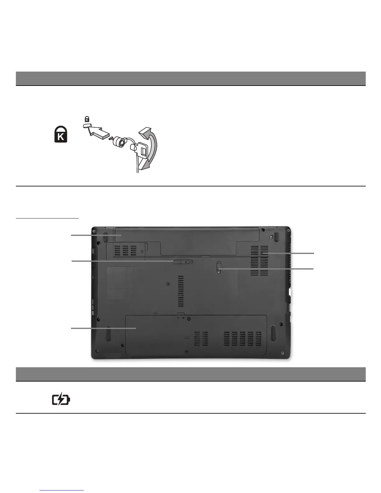 1 Battery bay Houses the computer's battery pack.