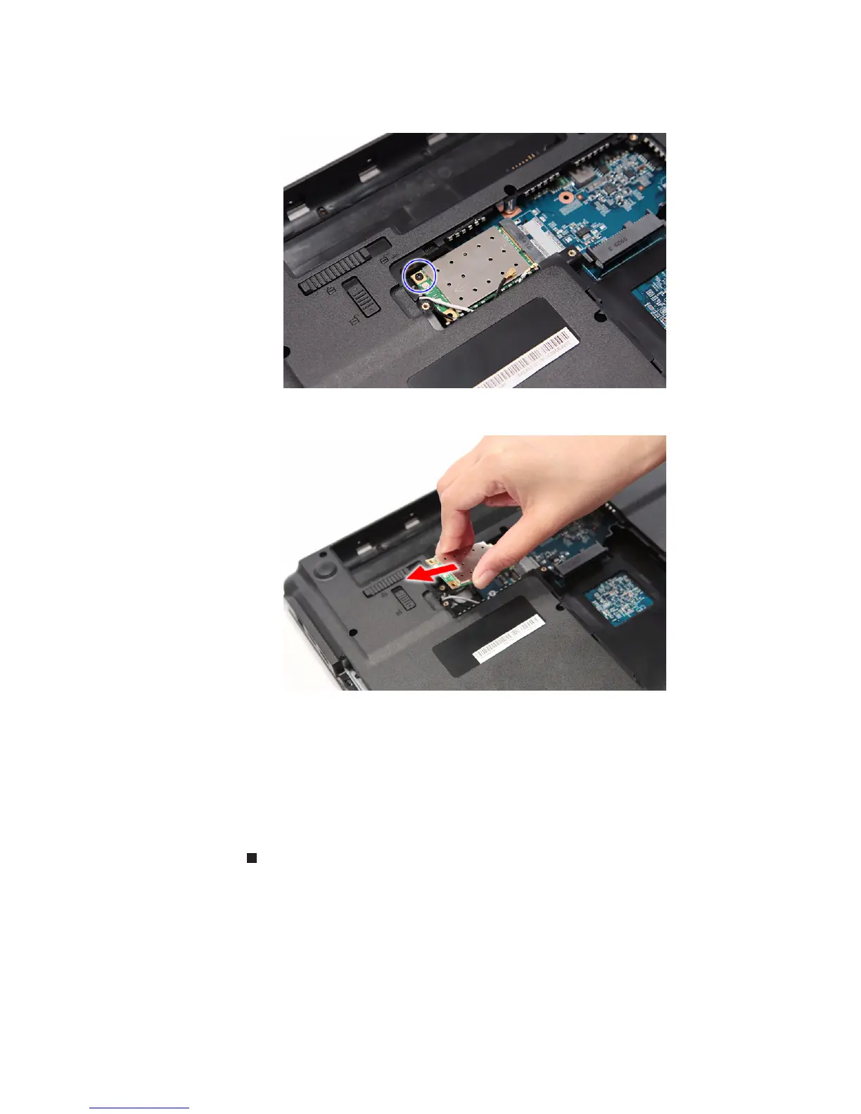 9 Secure the new wireless card with the screw removed in step 6.