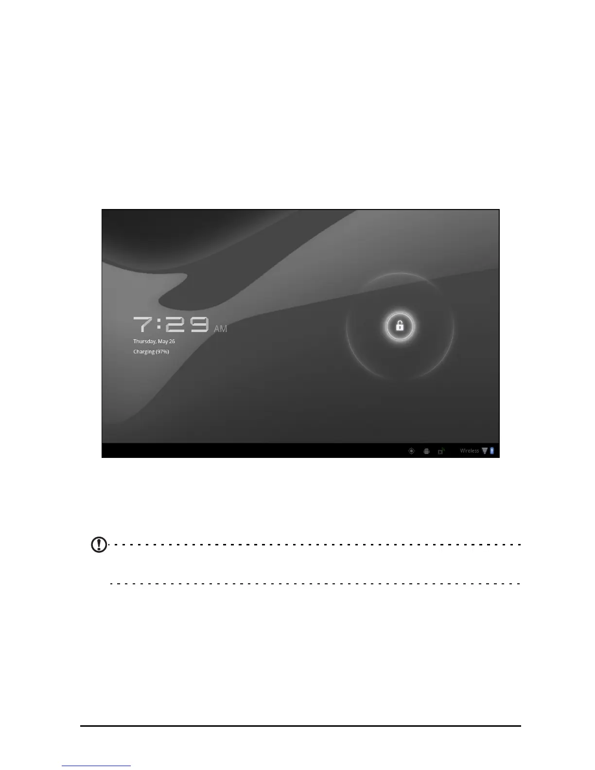 screen. Drag the lock symbol to the edge of the circle to unlock the tablet.