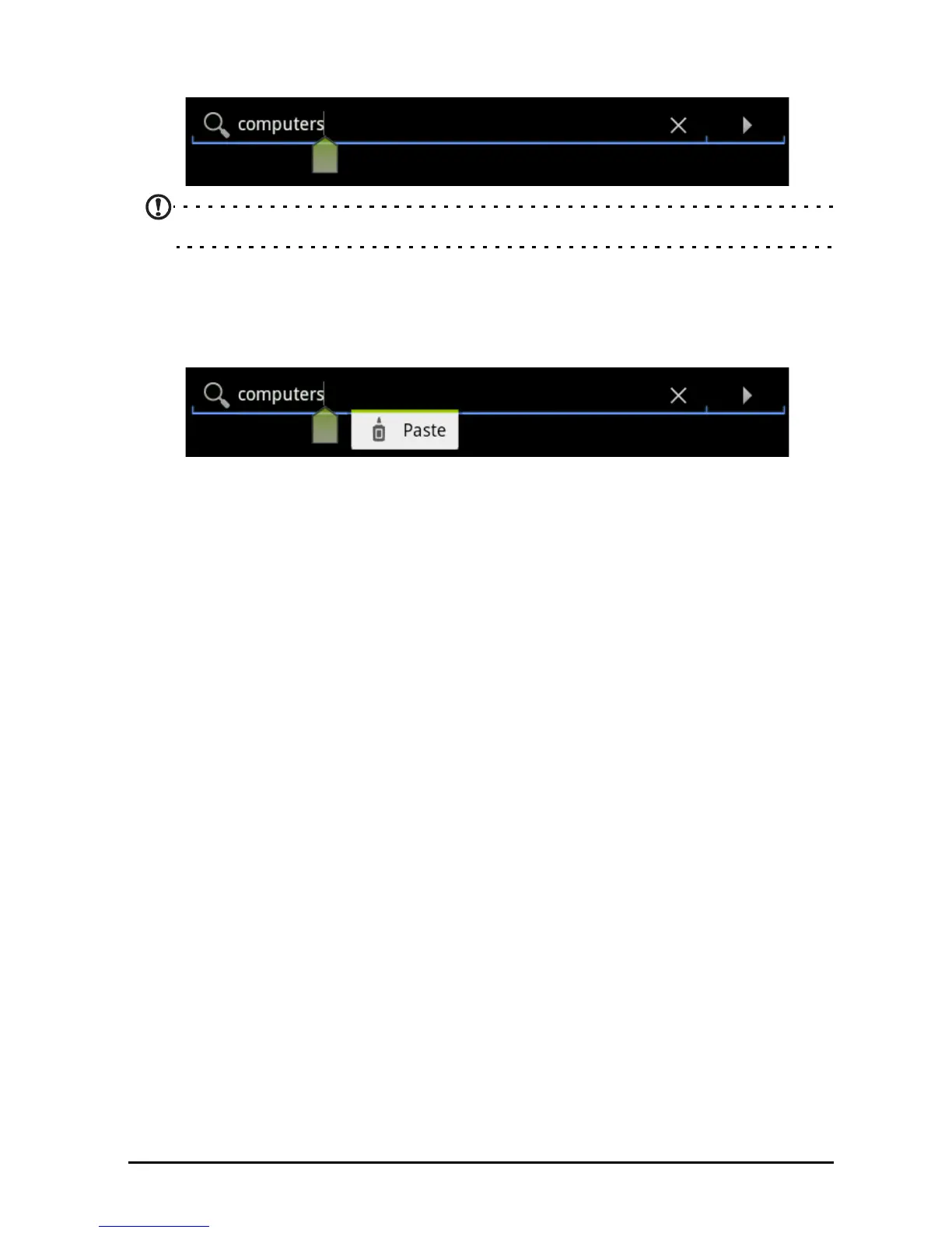 above the cursor. Tap the button to paste the text.