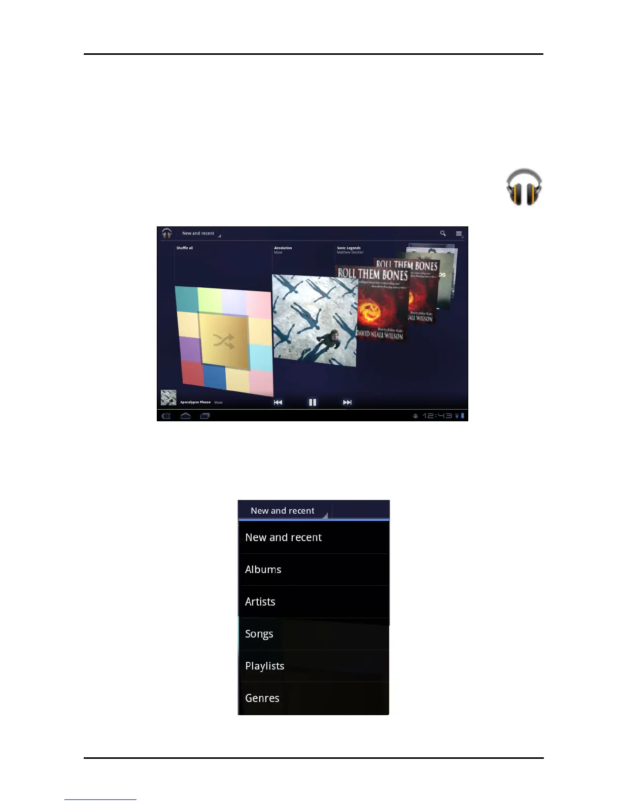 playback. Tap the Music icon to return to the previous view.