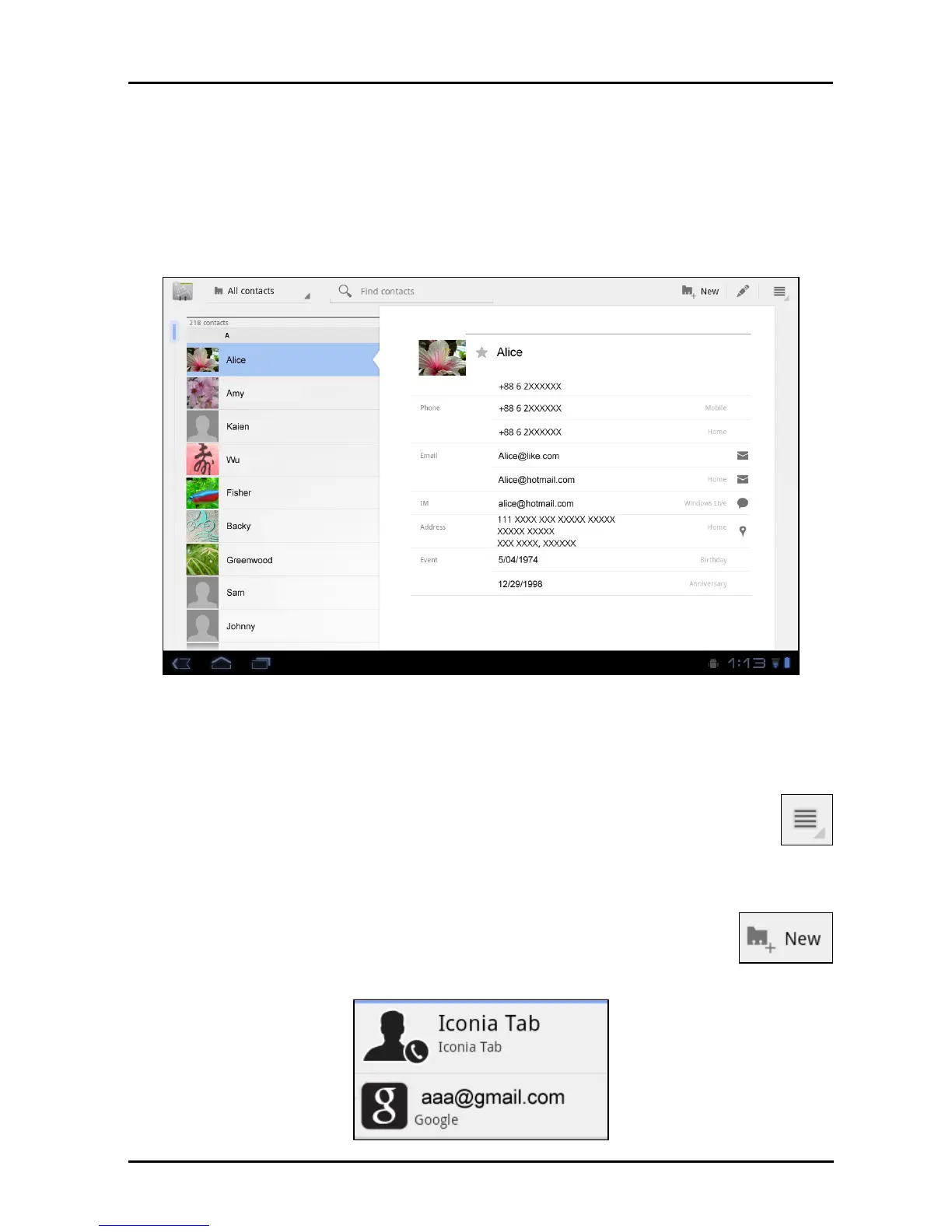 Tap New to add a new contact. You will be asked which account