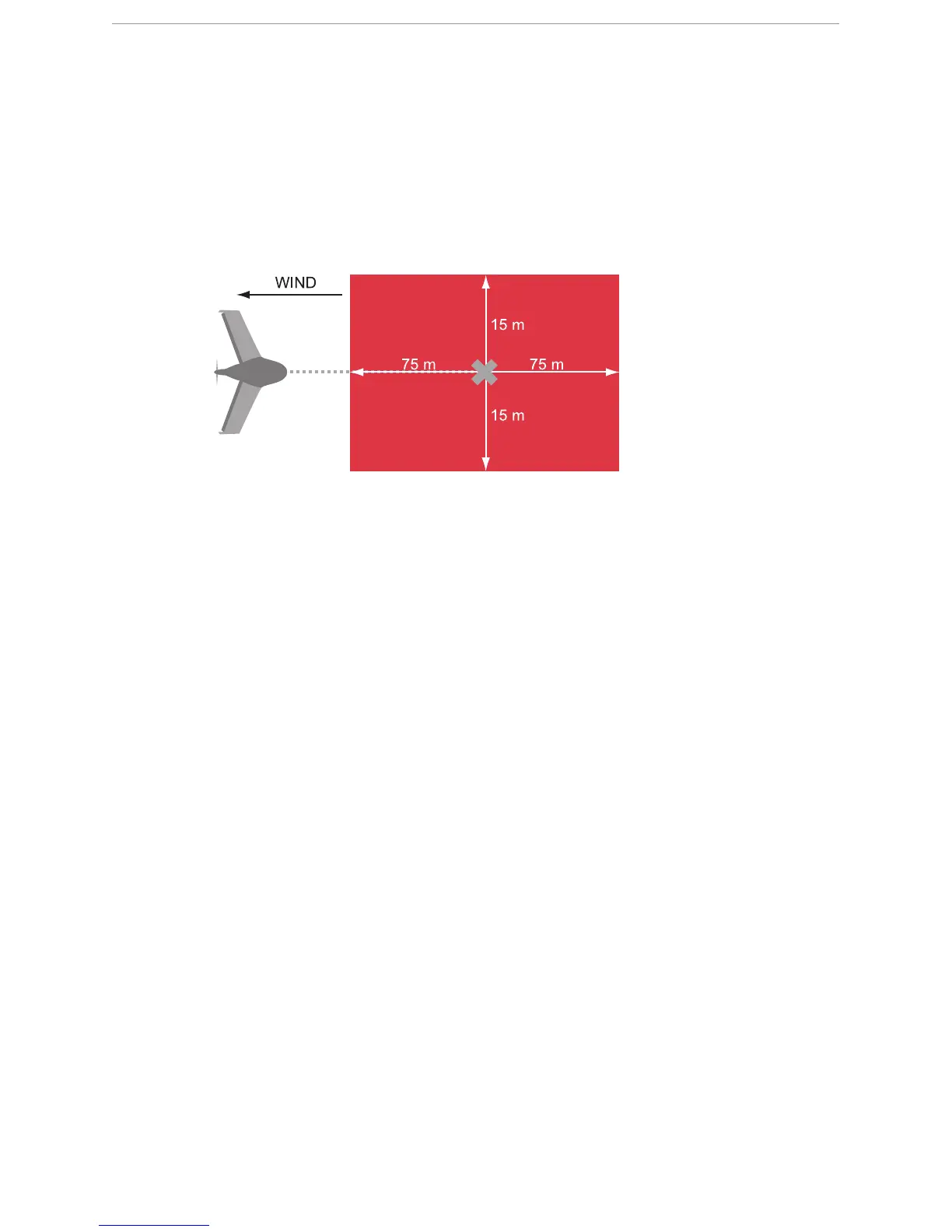 The obstacle clearance zone of the downwind and base leg extends over an area of 150 m to