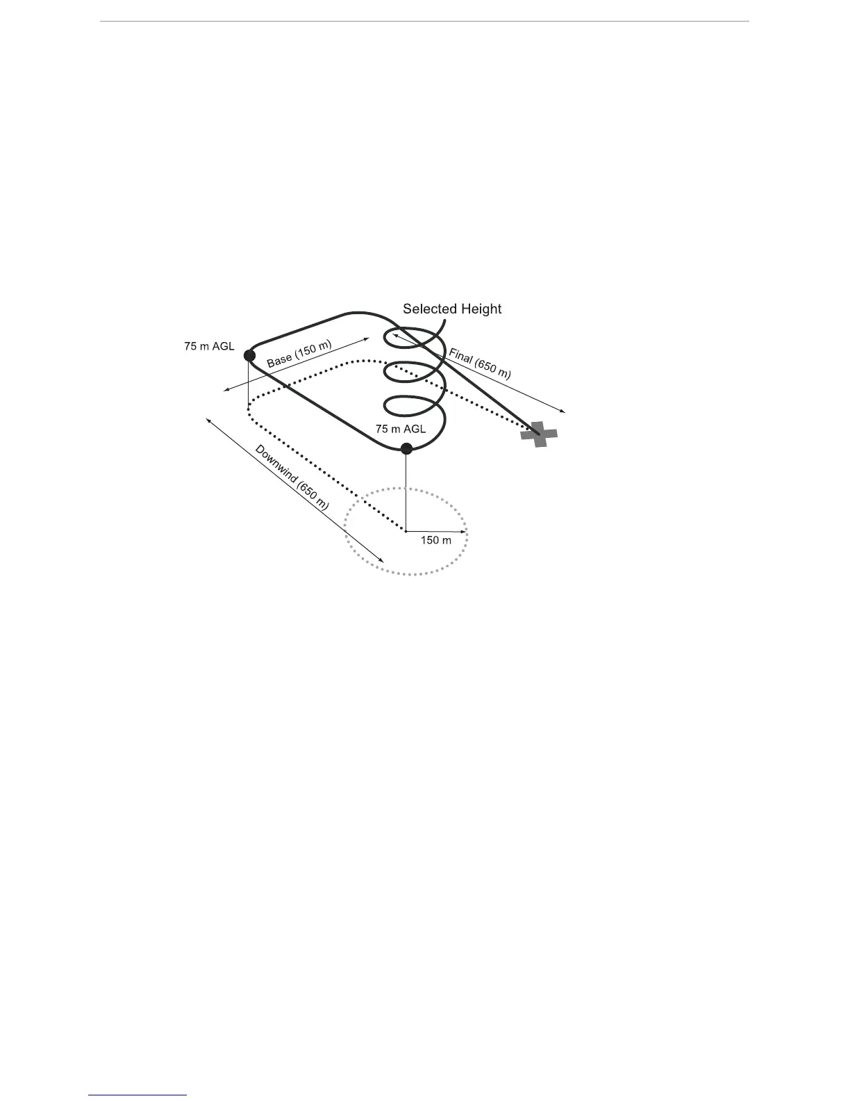 the aircraft will start spiraling down to 75 m AGL with a 150 m radius. From this moment on the