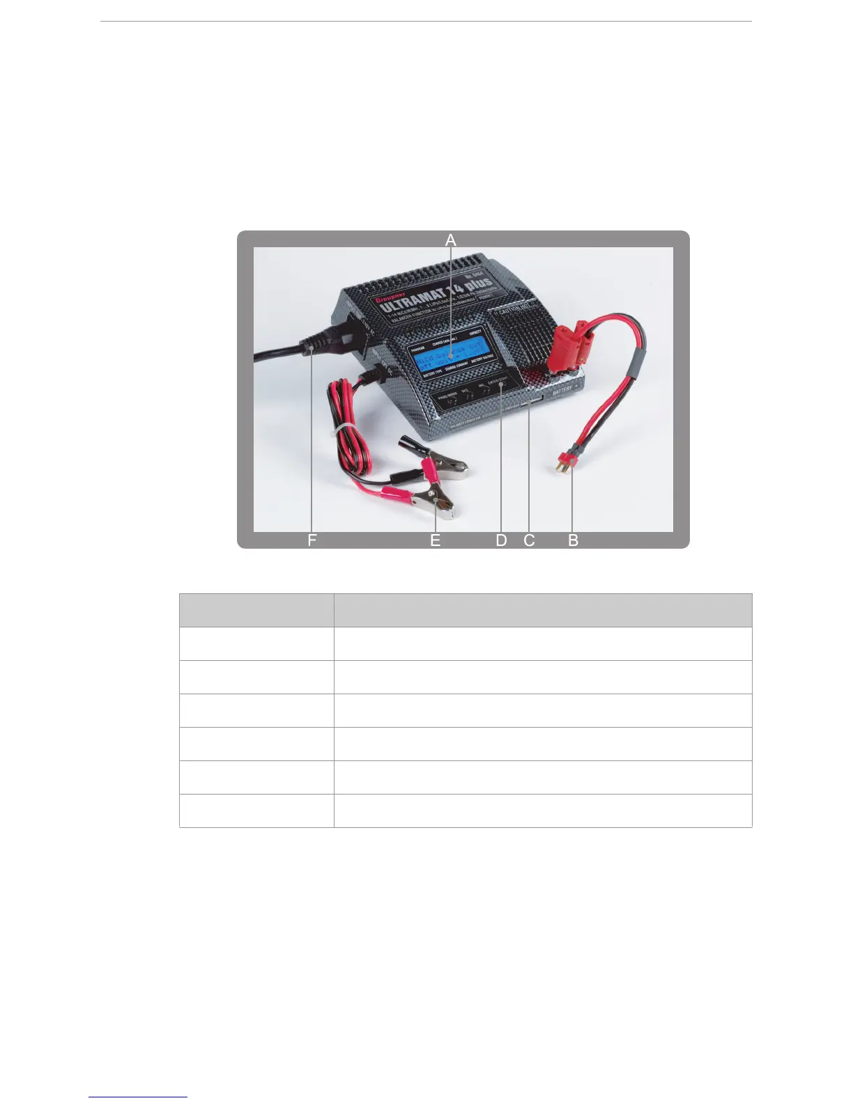 The Graupner Ultramat 14 plus charger consists of the following parts: