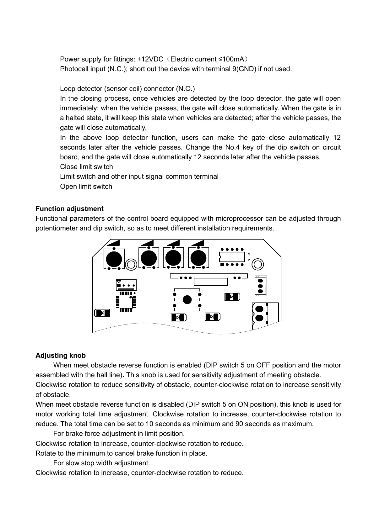 assembled with the hall line). This knob is used for sensitivity adjustment of meeting obstacle.